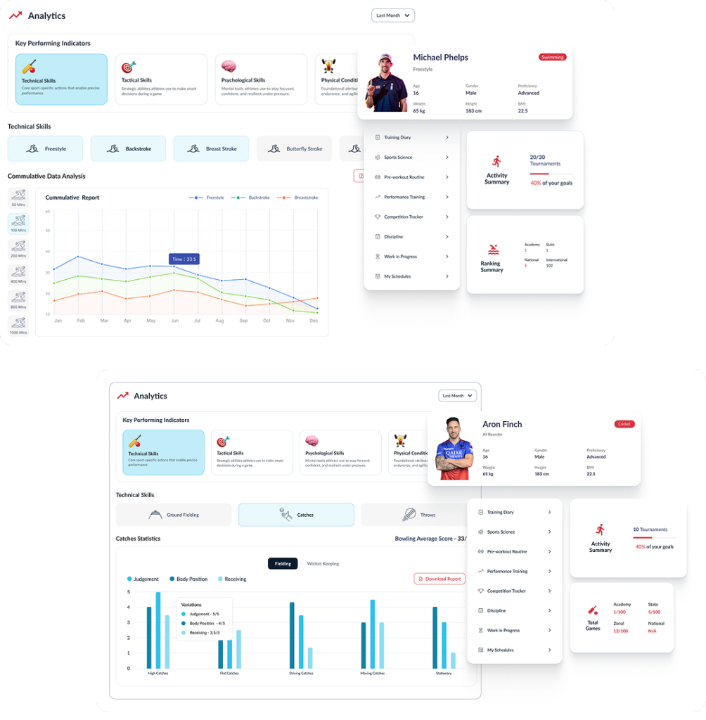 - Balance Depth with Clarity: The platform needed to balance depth with clarity – enabling athletes to monitor their progress and coaches to evaluate performance quickly and confidently.